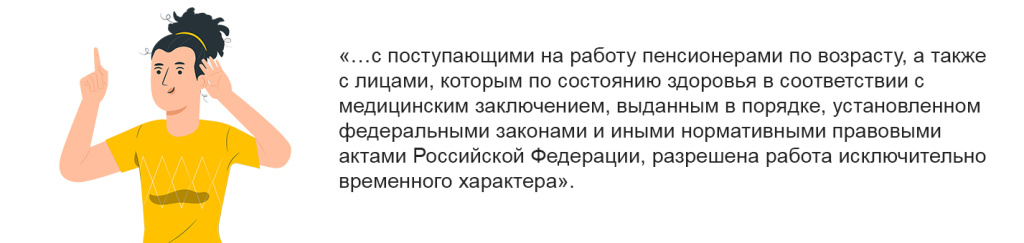 Возникает вопрос: а можно ли заключить срочный трудовой договор, если пенсия назначена человеку досрочно. Например, мужчина, имея тяжелые условия труда, проработал не менее двенадцати с половиной лет. Его страховой стаж не менее 25 лет, он имеет право выйти на пенсию до общего возраста, а именно – в 55 лет.