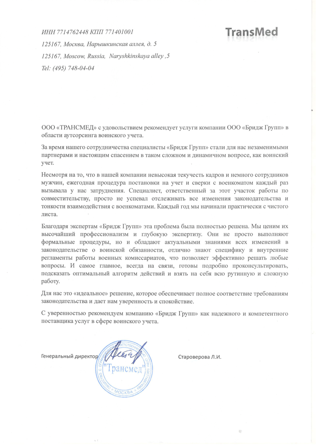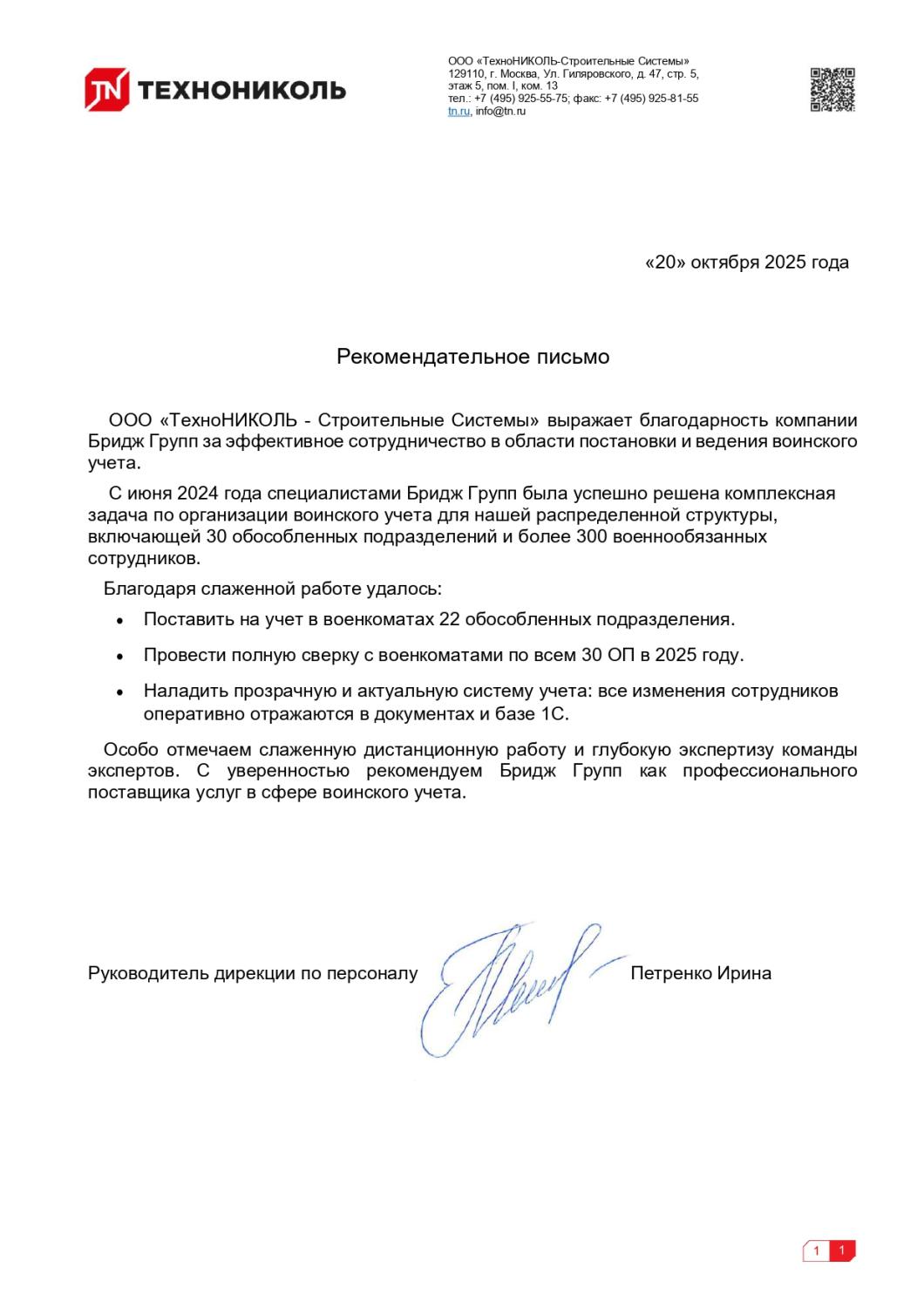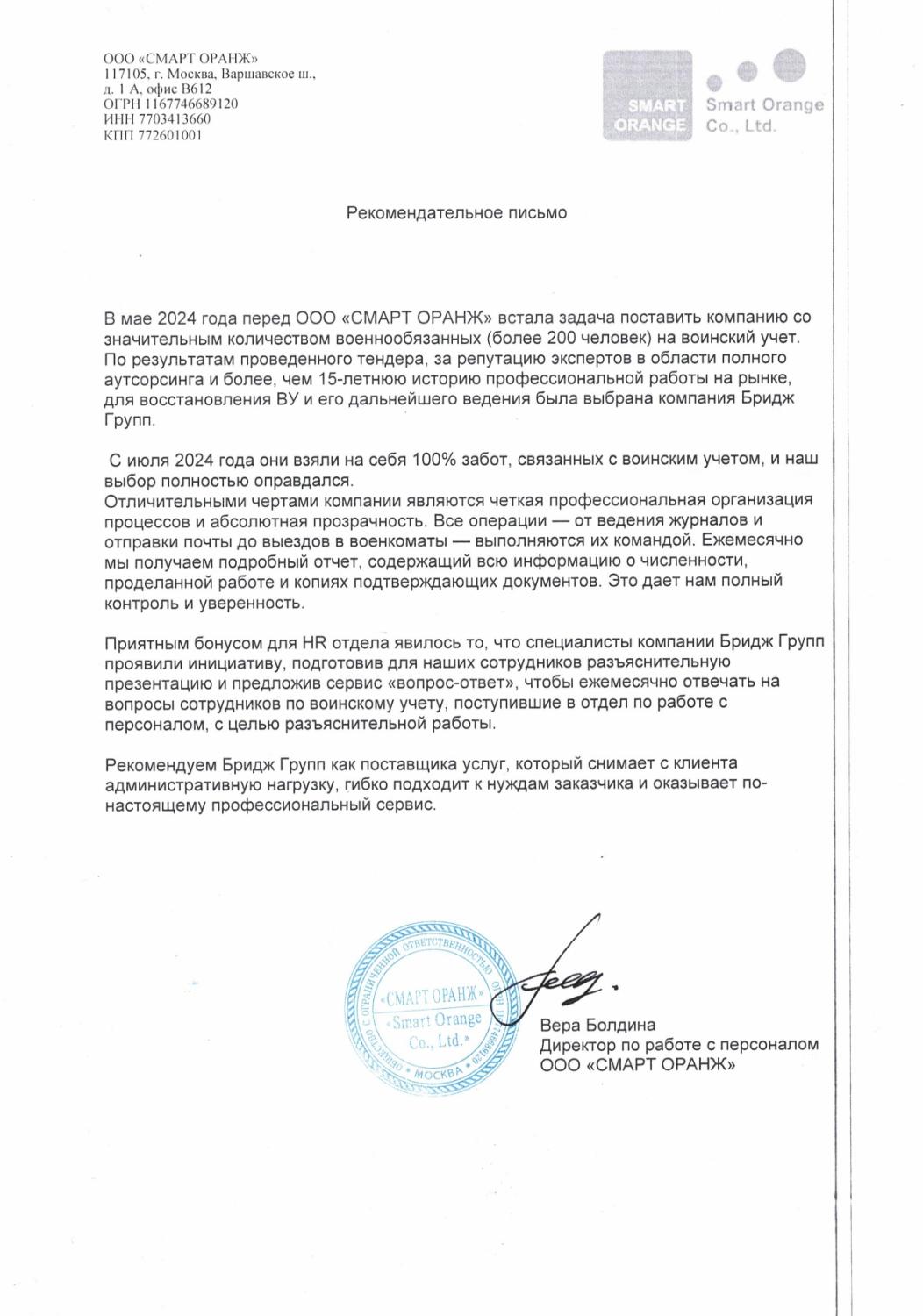 “Команда Бридж Групп обладает высоким уровнем экспертизы, оперативно реагируют на наши запросы, ответственно подходят к выполнению своих задач. Что не менее важно, в договоре прописана финансовая гарантия, при этом конкурентоспособная стоимость услуг, и, в целом, достойное соотношение цена-качество”.